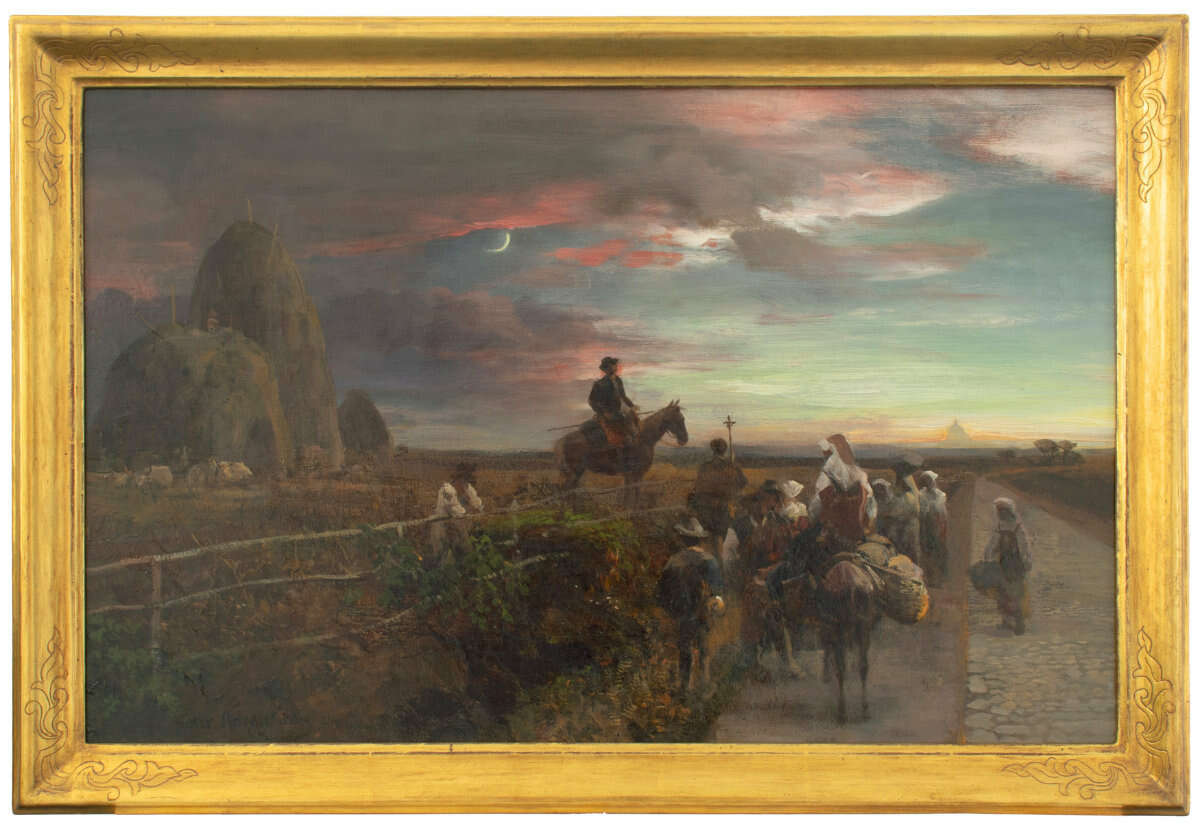 Neapolitan Night Landscape, oil on canvas, 42 x 65 cm canvas dimensions, signed, dated 1894, craquelured, partially rubbed and retouched