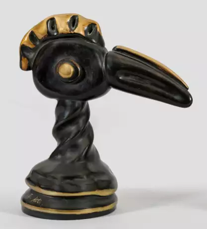 Bronze, dunkelbraun patiniert, teilweise poliert. Sign. u. nummeriert 5/10, Gießerstempel H G Berlin. Seltenes Exemplar des Künstlers. H. 20,3 cm.