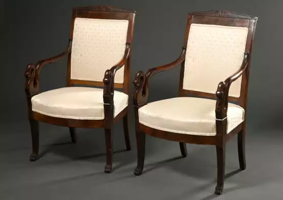 Лот 1526 | Pair of French armchairs with sculpted swan armres…