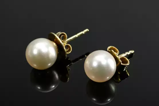 Лот 398 | Pair of yellow gold 585 cultured pearl stud earrin…