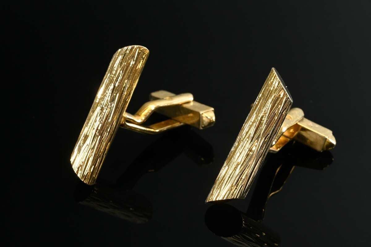 Лот 215 | Paar Gelbgold 750 Manschettenknöpfe mit Borkenmuster, 14,7g, L. 2,7cm