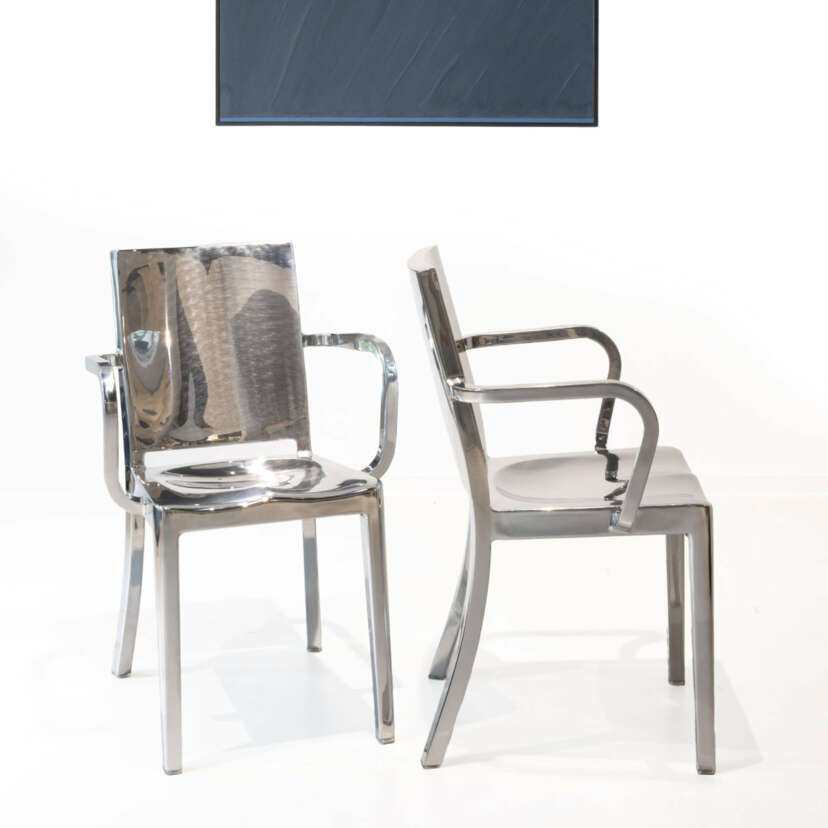 2 pcs, Emeco, USA, designed by Philippe Starck (1949) in 2000, hand polished 80% recycled aluminum, each with maker's mark, numbering and patent mark on the underside, each with maker's mark on the back, 83 x 52 x 39 cm