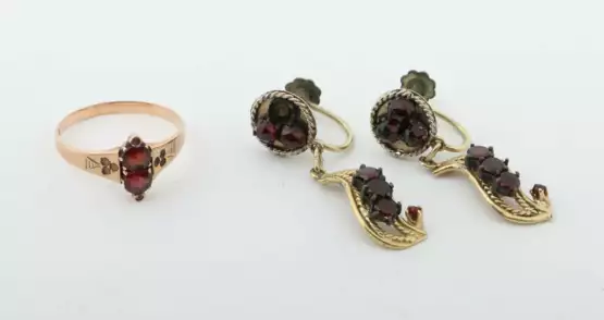 Лот 1315 | Paar Ohrhänger und Ring 20. Jhr., Ring und Paar Ohrhänger mit Steinen,…