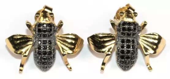 Лот 907 | Paar Ohrstecker "Bienen“, 925er Silber, vergoldet, schwarzer Zirkonia, ca. 1,9 x 1,5 cm