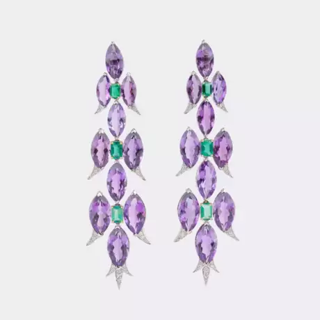 Лот 261 | Paar prachtvoller Amethyst Smaragd Ohrhänger.