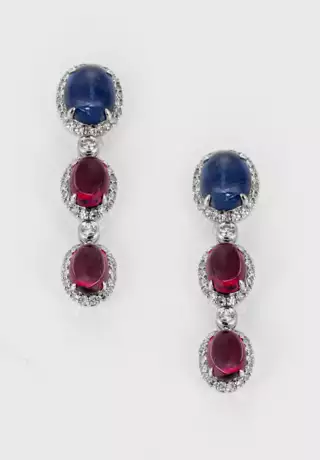 Лот 1089 | Paar Rhodolith-Saphir-Ohrgehänge