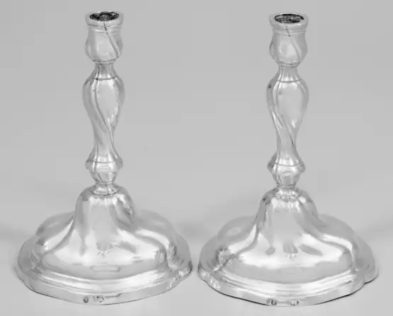 A pair of German Rococo silver candlesticks by Friedrich Wilhelm Krause (active 1764 - after 1770). Assay mark, maker´s mark.