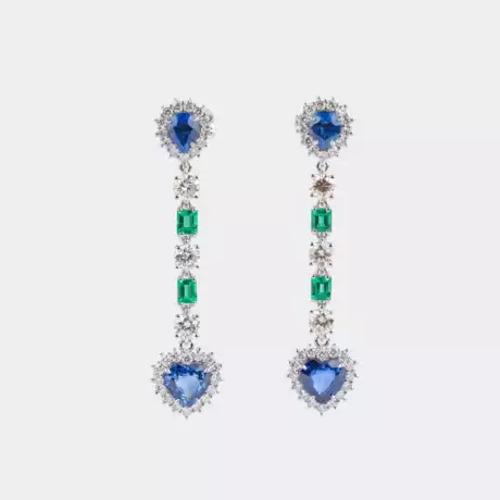 Лот 149 | Paar Saphir-Smaragd Ohrhänger mit Brillant-Besatz.