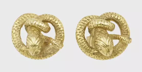 Gelbgold, gest. 585. Plastisch gestaltet mit in sich verschlungenen Schlangen. Ges.-Gew. ca. 3,75 g.