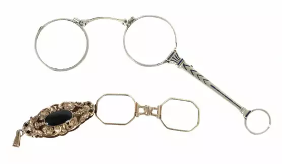 Лот 596 | Paar variierende Lorgnons 1. Drittel 20. Jh., Metall, part. blau email…