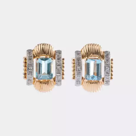 Лот 171 | Paar Vintage Aquamarin Ohrclips mit Diamant-Besatz.