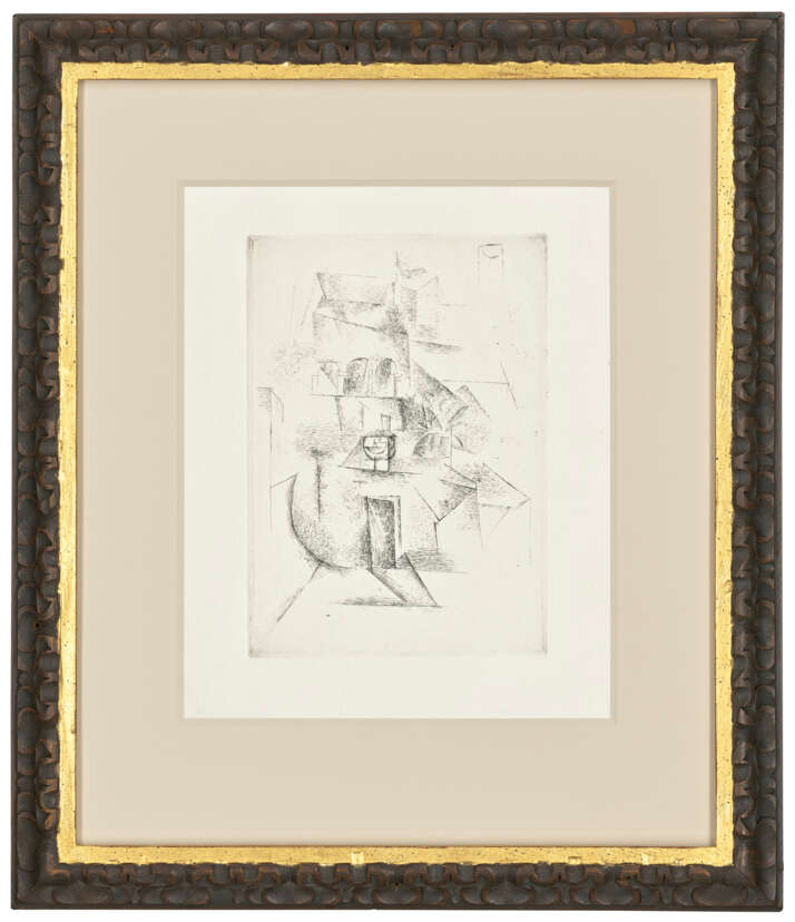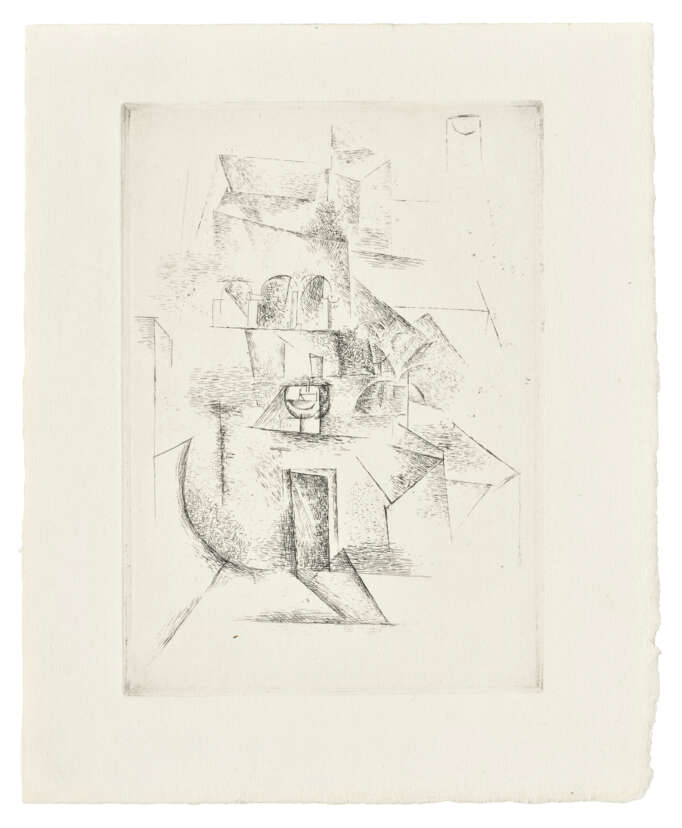 etching, 1910, on Van Gelder Zonen laid paper, after steel-facing, presumably from the edition of eighty-seven on this paper (there was also an edition of 19 on Japan, and some artist's proofs on both papers), published in Saint Matorel by D. H. Kahnweiler, Paris, 1911, printed by Delâtre, Paris