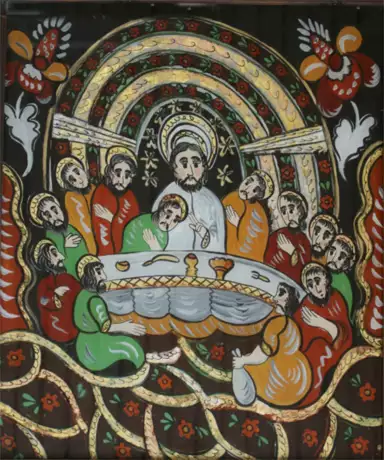 (geb. 1923 Zakopane). Das letzte Abendmahl. Hinterglasmalerei, 1977. 59 x 48,5 cm. Unt. li. sign. u. dat. Ger.