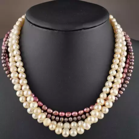 Лот 285 | Perlencollier - 4-reihig, unregelmäßig runde weiße…