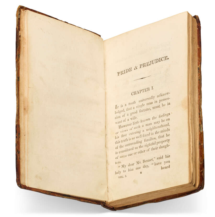 First edition of Jane Austen’s most famous and beloved novel, in a contemporary binding, with ownership inscriptions dated less than eight weeks after publication. In each volume is the ownership inscription, dated 20 March 1813, of Sir Maurice FitzGerald, 18th Knight of Kerry (1774-1849). FitzGerald was the husband of Maria La Touche, a cousin by marriage of Mary La Touche. Austen records in her letters that she visited and was visited by Mary and her daughter Miss East when Austen was in London in 1811, 1814 and 1815, straddling the publication of Pride and Prejudice. Maria La Touche and Maurice FitzGerald lived in Dublin and had been married since 1801. It is suggestive that FitzGerald was able to acquire this copy of Pride and Prejudice so expeditiously after publication and that he assiduously recorded the date of acquisition.