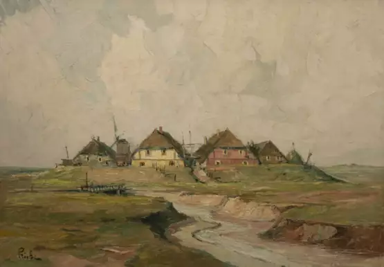 Лот 66 | Priebe, Rudolf (1889 Schulakowa-1964 Hamburg) "Fischerdorf mit Mühle an der Küste", Öl/ Lw., Lw. besch., 60x81 cm, Rahmen