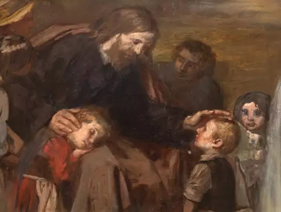 Лот 152 | "Biblische Szene", Öl/ Sperrholz, unsign., rückseitig bez. Southwell, Richard, 35x43 cm, Rahmen