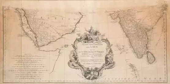 "Erster Theil der Karte von Asien welche die Türkei, Arabien, Persien, Indien diesseits des Ganges und einen Theil der Tatarei enthält", Kupferstich, von d' Anville bei F.A. Schraembl, dat. 1786, Blatt gebräunt…