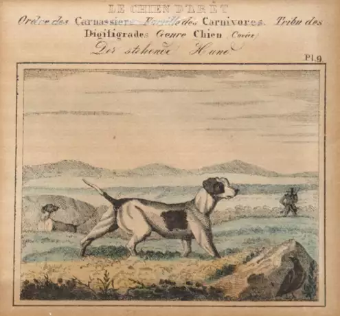 Лот 255 | "Le Chien d´Arret-Der stehende Hund", Farbradierung, Pl. 9, 9,5x9,5 cm, im Passepartout hinter Glas und Rahmen