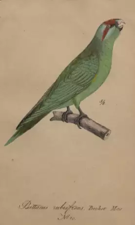 Лот 248 | "Ziegensittich", kolorierte Grafik, 5/ 8 und bez. "no.10", 17,5x10,5 cm, im Passepartout hinter Glas und Rahmen