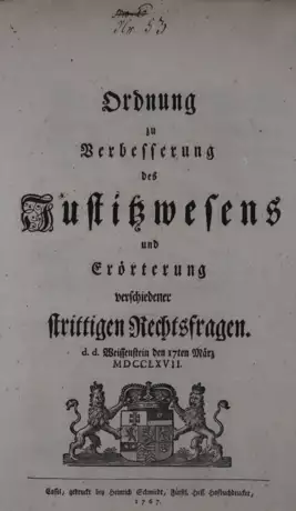 Лот 583 | Rechtswesen - "Ordnung zu Verbesserung des Justizw…