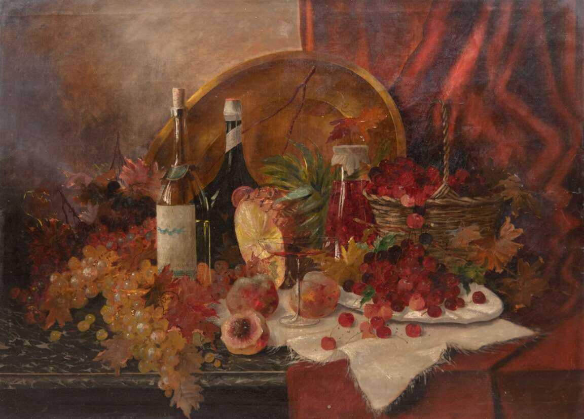 Лот 234 | Redtwitz, Anton (1871-1965, Österreichischer Künstler) "Stilleben mit Früchten, Flaschen und Korb", Öl/ Lw., sign. u.r., 74x100 cm, Rahmen