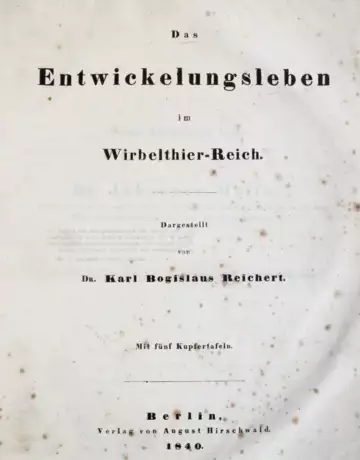 DSB II, 360. Nissen ZBI, 3352. - Ein sehr seltenes Frühwerk zur Embryologie des deutschen Anatomen und Embryologen Karl Bogislaus Reichert. "Reichert leistete einen sehr wichtigen Beitrag zum Wissen über die Veränderungen der frühen Struktur während der Embryonalentwicklung und zum Verständnis der Entwicklung eines einzelnen Organismus aus vergleichender Sicht." (DSB). - Die Tafeln zeigen die mikroskopische Entwicklung von Embryonen von Fröschen und Hühnern. - Schwach gebräunt, stellenweise stockfleckig, Schluss etw. wasserrandig. Mit hs. Widmung a.V. (14999).
