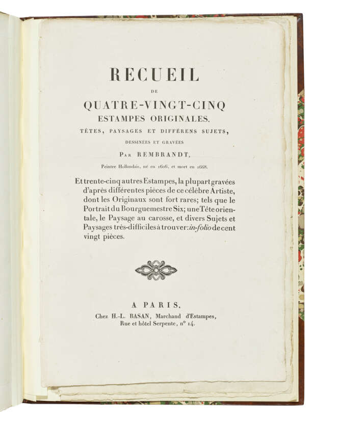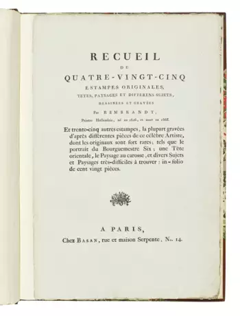 Recueil de Quatre-Vingt-Cinq Estampes originales, Têtes, Paysages et différents Sujet, dessinées et gravées par Rembrandt (Recueil Basan)