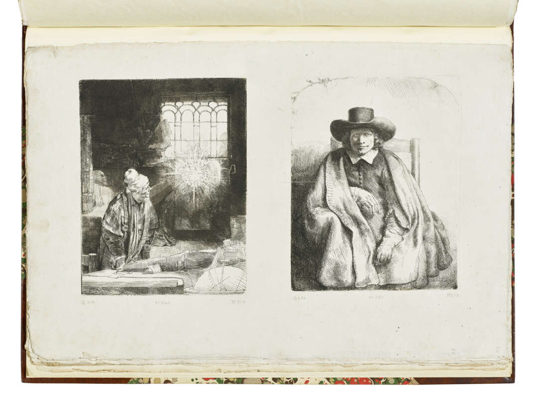 the album containing 76 etchings by Rembrandt, three copies after Rembrandt, and five prints by other artists of his school (84 prints in total)