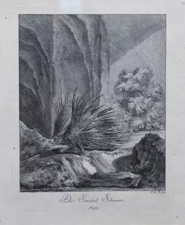Лот 258 | Ridinger, Johann Elias (1698 Ulm- 1767 Augsburg) "Das Stachel Schwein", Stich, 21,5x17,5 cm, im Passepartout hinter Glas und Rahmen