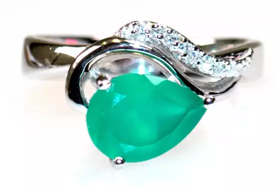 Лот 853 | Ring, 925er Silber, smaragdfarbener Achat und Zirkonia, RG 54, Innendurchmesser 17,2 mm