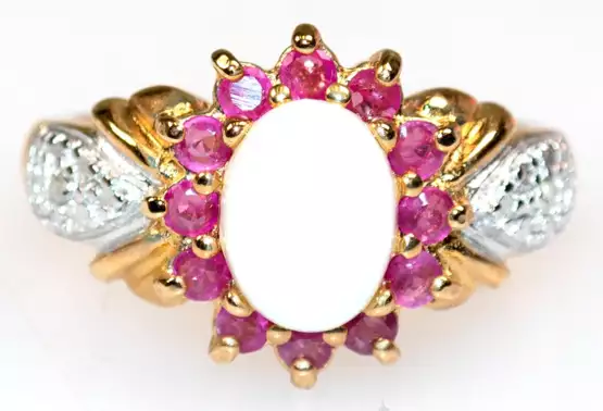 Лот 851 | Ring, 925er Silber, vergoldet, echter Opal, Rubine und 2 kl. Diamanten, in rhodinierter Fassung, RG 52, Innendurchmesser 16,5 mm
