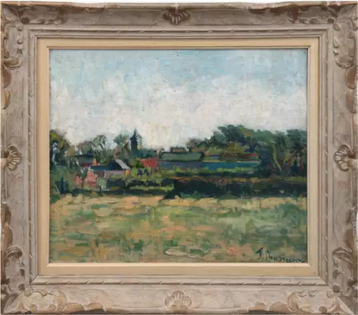 Лот 134 | Rousseau, T. "Sommerliche Dorfansicht", Öl/Lw., kl. Loch im oberen Bereich, sign. u.r., 46x55 cm, Rahmen