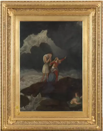 Лот 186 | Sakralmaler des 19. Jh. "Biblische Szene", Öl/Lw., unsign., verso 1x Hinterlegung, 59x42 cm, Rahmen