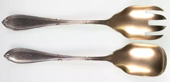 Лот 726 | Salat-Besteck, Perlrand und Kreuzband, um 1920, 60er Auflage, Laffen vergoldet, L. 25 cm
