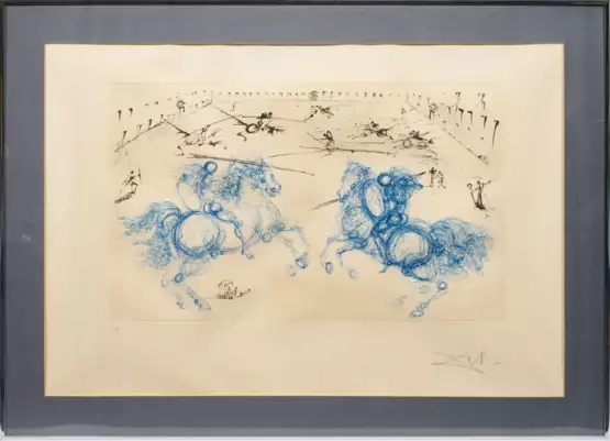 Farbradierung mit Aquatinta/Velin, 1971. Sign. sowie bez. E.A. (Künstlerexemplar). Blatt 2 (von 12) aus der Folge "Calderón, La vie est un songe", erschienen bei Editeuropa Anstalt/Berggruen außerhalb der Gesamtauflage von 275 Exemplaren. Wvz. Michler/Löpsinger 516. Plattenmaß 32,6 cm x 52,2 cm. Rahmen.