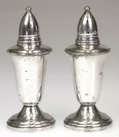 Лот 691 | Salz- und Pfefferstreuer, bezeichnet mit Sterling, Crown, Weighted, mit Glaseinsätzen, guter gebrauchter Zustand, Höhe ca. 11 cm