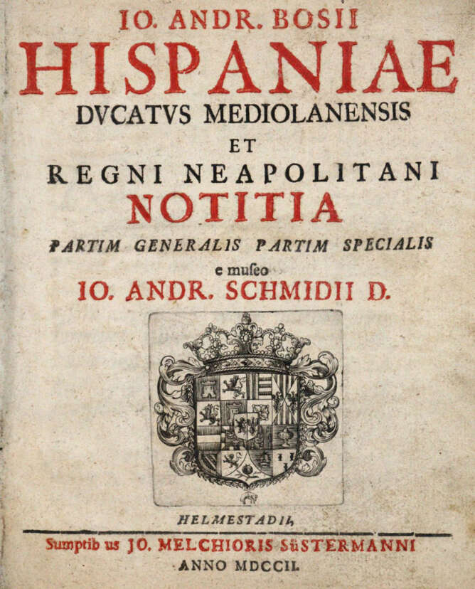 ╔I.╗ Bose,J.A. Hispaniae Ducatus Mediolanensis et regni neopolitani notitia. Helmstedt, Süstermann 1702. 4 Bl., 228 S., 12 Bl. - ╔II.╗ Franck v. Franckenau,G.E. Sacra Themidis Hispanae Arcana,... Hannover, Foerster 1703. Mit gest. Front. 22 Bl., 206 S. - ╔III.╗ Ius Hispano-Austriacum Assertum. O.O. 1701. 53 S., 1 Bl. - ╔IV.╗ Justitia Augustae Domus Austricae... Wien 1702. 78 S. - ╔V.╗ Excerpta Historica & Juridica de Natura successionis in monarchiam hispaniae. O.O. 1700. 52 S. - ╔VI.╗ Aurea bulla de jure et ordine succedendi in ducatum mediolanensem. O.O. 1701. 42 S. - ╔VII.╗ Buddeus,J.F. Ulterior disquisitio de iure gentis Austriacae in regnum Hispaniae. Halle 1702. 32 S. - ╔VIII.╗ Leibniz,G.W. La Justice Encouragée, Contre Les chicanes. O.O. 1701. 5 Bl., 76 S. - ╔IX.╗ Vorstellung Der Hoheit, Macht und Gewalt Auch Vorzug vor vielen andern Provincien Europä Der Königreiche Spanien. O.O. 1701. 1 Bl., 82 S. - ╔X.╗ Spaniens Hohe Trauer-Fahne... Köln 1701. Mit gest. Portr. - ╔XI.╗ Frankreichs Hohe Freuden-Fahne... Köln 1701. - Gebräunt, stellenweise fleckig.