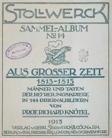 Enthält u.a.: Der Bunte Rock. Eine Sammlung deutscher Uniformen. Mit 252 Sammelbildern. - Knötel,R. Aus grosser Zeit 1813-1815. Köln, Stollwerck 1913. Mit 144 Sammelbildern. - Die Reichswehr. Köln 1933. Mit 280 Sammelbildern. - Gebrauchssp.
