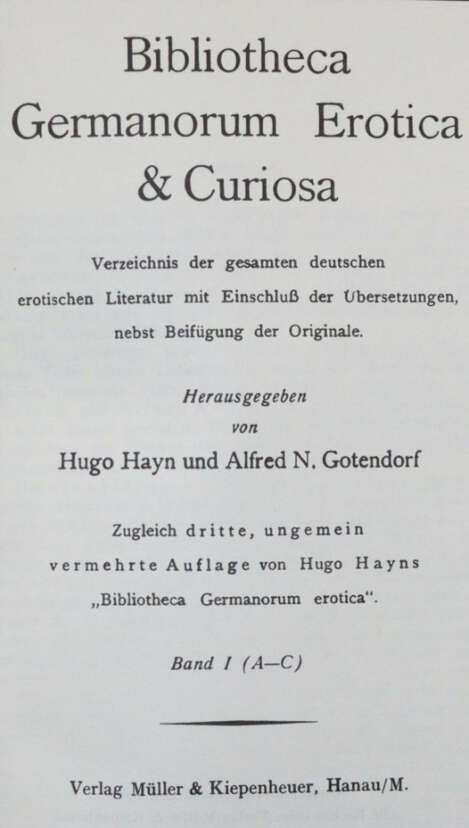 ╔Enthält u.a.:╗ Fromm,H. Bibliographie deutscher Übersetzungen aus dem Französischen 700-1948. 6 Bde. Baden-Baden 1950-53. - Hayn,H. u. A.N.Gotendorf. Bibliotheca Germanorum Erotica & Curiosa. 9 Bde. Unveränd. Nachdruck. Hanau 1968. - Holzmann,M. u. H.Bohatta. Deutsches Anonymen-Lexikon. 9 Bde. Hildesheim 1984. - Weitere. Tls. etw. Gebrauchssp. - Liste kann angefordert werden.