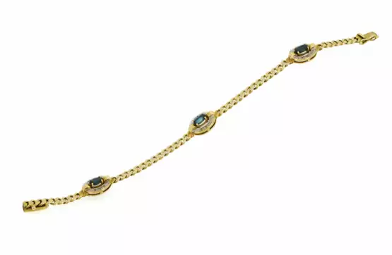 Description: Classic flat armour bracelet in yellow gold with three oval intermediate elements, partly