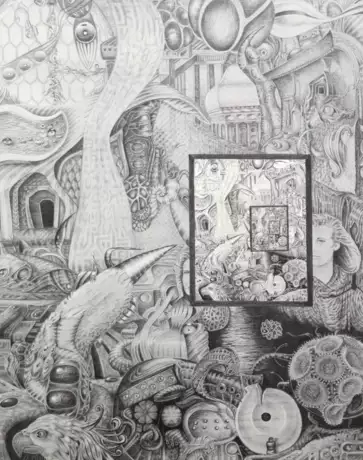 Лот 64 | Schenck, Toge (?- 2023) "Figürlich Bild im Bild", Zeichnung, rückseitig signiert und datiert 1982, 78x60,5 cm, hinter Glas und Rahmen