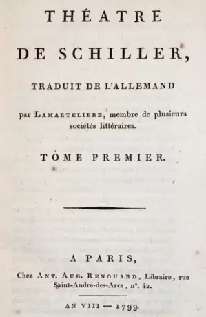 Cioranescu II, 36221. Erste franz. Ausgabe. - Stellenweise schwach gebräunt u. fleckig. - ╔Dabei: Ders.╗ Gedichte. Bd. 1 (v.2). Lpz, Crusius 1800. Mit gest. Front. v. W.Böhm nach H.Meyer. 3 Bl., 335 S. Hldr. d. Zt. mit Rverg. (Etw. best. u. berieb.). - Zus. 3 Bde.