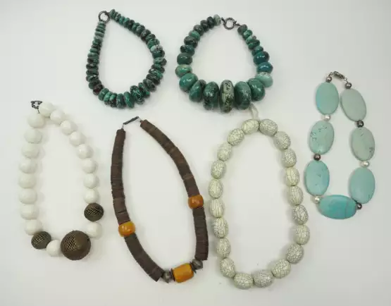 Лот 1159 | Sechs Halsketten mit großen Steinen.