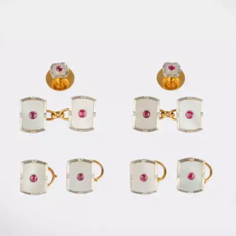 Лот 248 | Set eleganter Rubin Perlmutt Manschettenknöpfe.