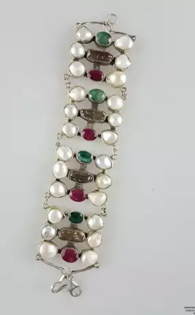 Лот 291 | Silberarmband mit Stein- und Perlenbesatz- Sterlin…
