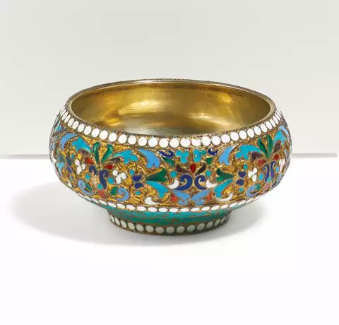 Лот 532  | SMALL SILVER SALT WITH FLORAL ENAMEL DECOR
