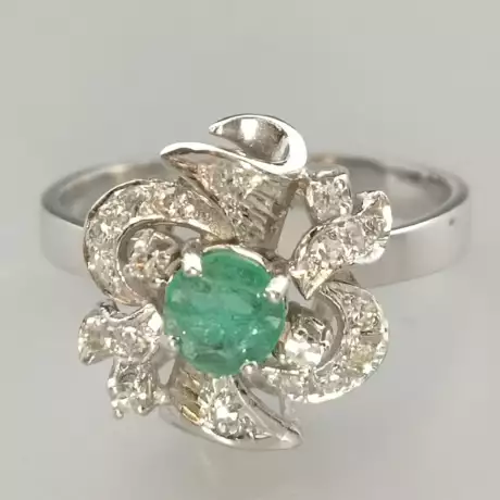 Лот 218 | Smaragdring mit Diamanten - Weißgold 585/000 (14 K…
