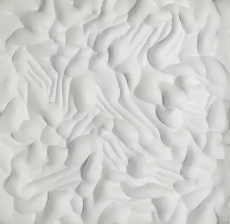 Ohne Titel, 1975. Schaumstoffrelief, weiß gefasst, in Kastenrahmung. In Faserstift auf der Rahmenrückseite signiert und datiert.