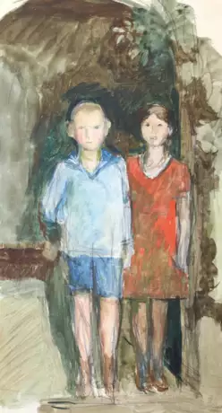 Deutlich spiegelt Surbeks Zeichnung mit der einfachen, monumentalen und an die Fläche gebundenen Malauffassung die Rezeption des wohl bekanntesten Schweizer Malers Ferdinand Hodler (1853-1918) wider. - Oberrand etwas faltig. - ╔Dabei: Ders.╗ Im Freien am Tisch sitzendes Mädchen. Bleistift auf cremefarbenem Papier. 33,5 x 26,5 cm. Re. unten sign. u. num. "VSurbek N 237". - Verso undeutl. Stempel. - ╔Ders.╗ Skizzenblatt mit mehreren Kinderköpfen. Bleistift auf cremefarbenem Papier. 21 x 27 cm. Verso: Mehrere figürl. Skizzen, möglicherweise von anderer Hand. - ╔Ders.:╗ Jugendliches Selbstbildnis, am Strand hockend. Lithogr. auf chamoisfarbenem Karton. 35,2 x 25 cm. Re. unten sign. "VSurbek". ╔Ders.:╗ Schweizer Bauernhaus und Scheune im Winter. Lithogr. auf cremefarbenem Velin, re. unten sign. "VSurbek". 23,5 x 32,2 cm. - ╔Ders.:╗ Gäste im Restaurant. Lithogr. auf cremefarbenem Velin. 23,5 x 31,8 cm. Re. unten sign. "VSurbek". - ╔Ders.:╗ Stillleben mit Maus. Lithogr. auf chamoisfarbenem Karton. 25 x 35 cm. Re. unten sign. "VSurbek". Zus. 7 Bl.